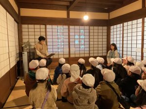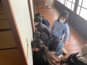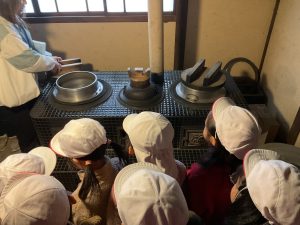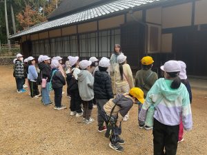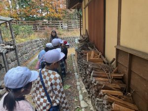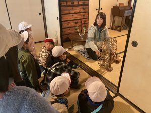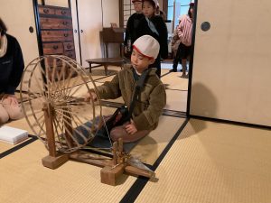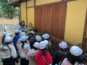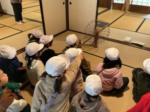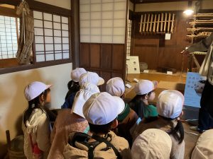 文化の森へ行ってきました。まゆの糸という家を見学し,土間や釜戸など今の家との違いをたくさん発見し,暮らしを想像することができました。たぬきの糸車の朗読を聞き,背景を想像しながらお話を頭の中で広げました。その後,実際に糸車を回したり,障子の穴から覗いたり物語の中を体験してきました。