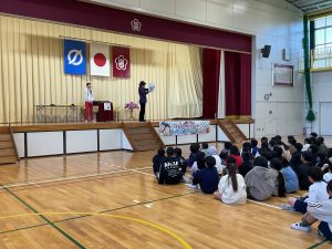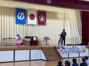 12月10日に、サイエンスショーがありました。毎年子どもたちも楽しみしている科学の知識を活用したパフォーマンスを見せていただけます。参加型のショーで代表の子どもたちや先生方の反応に会場は大盛り上がりでした。
