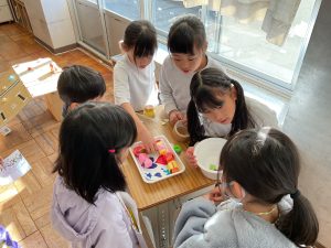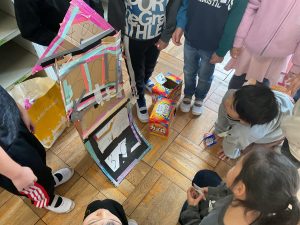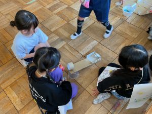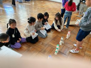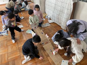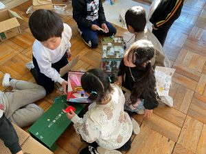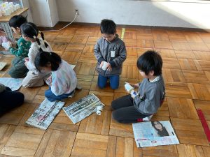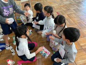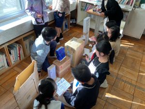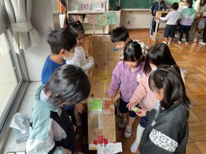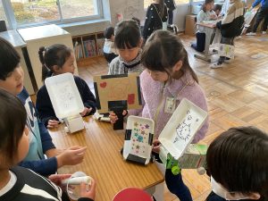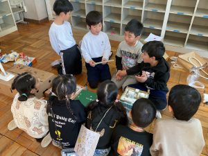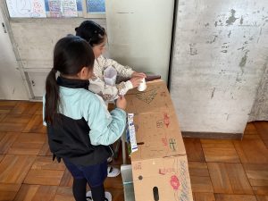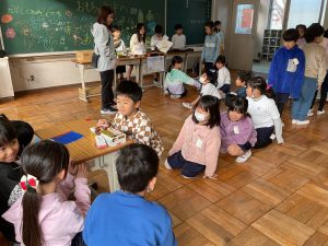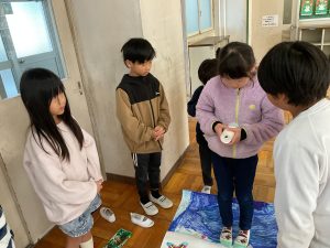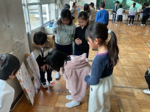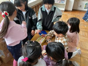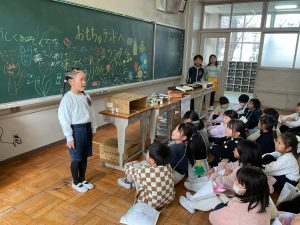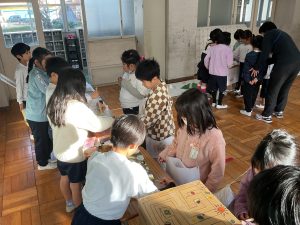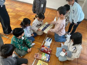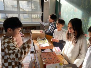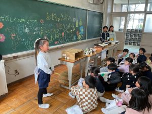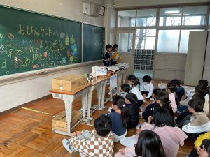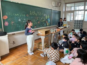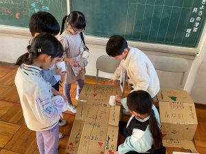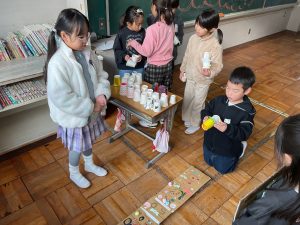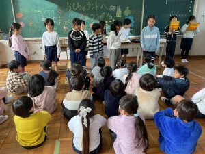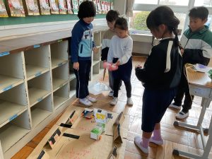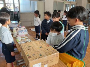 2年生が生活科でおもちゃランドに招待してくれました。1年生が楽しく遊べるように様々な工夫をした手作りおもちゃが用意されていました。2年生のお兄さんお姉さんが優しく声をかけてくれました。「がんばれ」「すごい」など温かい言葉や拍手で1年生は楽しく夢中で遊んでいました。2年生の姿から学ぶことがたくさんありました。この姿を目指して1月からは2年生0学期のつもりで目標をもって頑張ります。