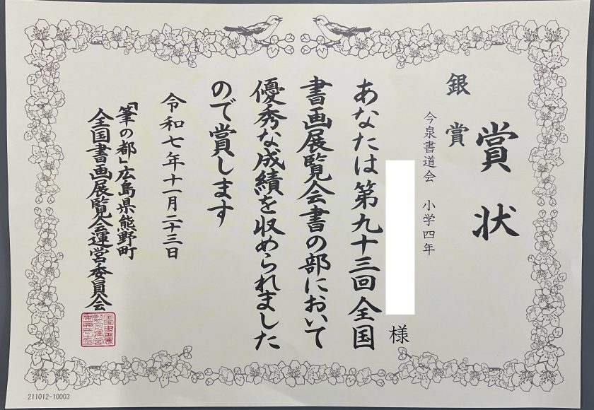 令和7年11月23日に第93回全国書画展覧会が行われ、太田っ子が優秀な成績をおさめたので紹介します。