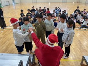 前日に作成したプレゼントカード交換をし、サンタさんからもプレゼントリレーをしました。クラスの仲間と協力をして、笑顔いっぱいの児童をみると1年間の疲れも吹っ飛んでしまうほどでした。本日クリスマスプレゼントとして、折り紙と折り紙の折り方のプリントを持ち帰っておりますのでご家庭にてご確認ください。