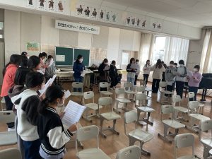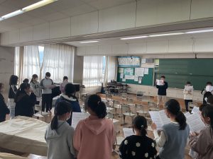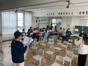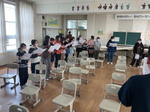 ありがとうの会(6年生を送る会)に向けて合唱練習が始まりました。曲目は「あなたへ」です。難しい曲ですが、とても迫力のある曲です。まずは各パートが正しい音で歌えるように、どの子も一生懸命練習しています。昼休みには歌が好きな子たちが集まり、進んで自主練習をする姿もあります。ソプラノとアルトが重なり、すてきなハーモニーを聞ける日が待ち遠しいです。