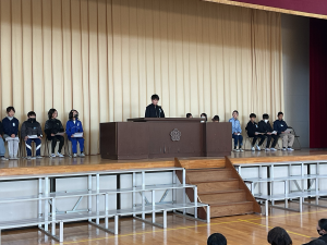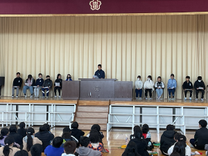 1月30日には、新委員長・通学班代表を決める立会演説会が行われました。来年度の学校の中心となるリーダーを決める大事な会ということで、5年生全員が真剣に立候補者の本気の気持ちを聞いていました。