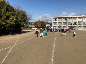 今回は、6年生と一緒に太陽時間に遊びました。6年生が色々な遊びを考えてくれ、転がしドッジやだるまさんが転んだをしました。