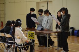総合的な学習の時間で学んできた,SDGsや環境問題,世界の国々のことについて調べ,持続可能な社会にするために考えた自分たちにできること,修学旅行での思い出,通学班や運動会,スマイルなどで最高学年として大切にしてきたことについて,各クラスで伝えました。