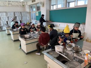 出来上がった「ご飯とみそ汁」はおいしく食べて、片付けまで協力してすることができました。ご家庭でも機会があれば一緒に作ってみてください。