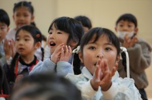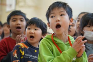また、今日の昼休みには、ありがとうの会で歌う「ありがとうの花」の振り付け練習会がありました。振り付けを覚え、元気いっぱい、楽しそうに歌うことができました。