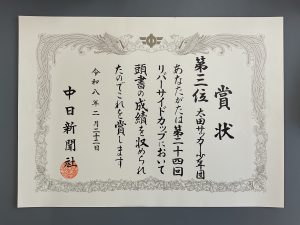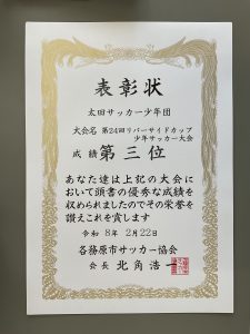令和8年2月22日に、第24回リバーサイドカップ 少年サッカー大会が行われ、太田っ子が優秀な成績をおさめたので紹介します。