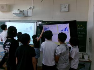 そうなれば、全体交流へと流れ込み,、各資料ごとに自分が考えた意見を伝えあいます。 仲間の考えを聞いて、「なるほど!」「同じ。」などの反応も自然です。