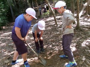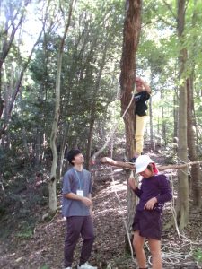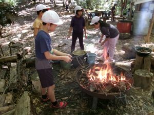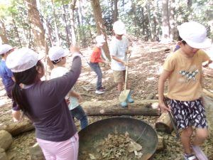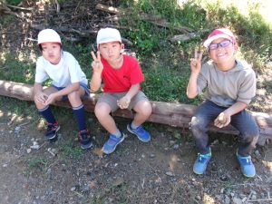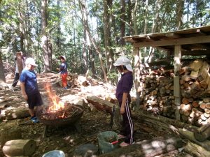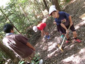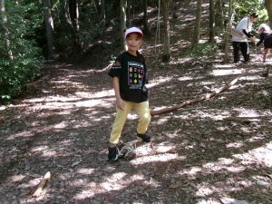 火おこし、虫探し、ハンモックやブランコ、アスレチックづくりなど、写真には無いことも(見出しの言葉にある「お店屋さん」もここでやっています)たくさん、たくさん、暇になることがないぐらい、思い思いの活動を楽しみ、下山。