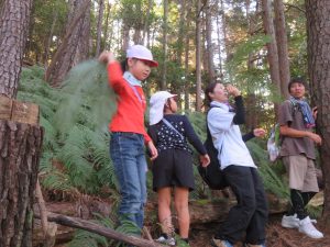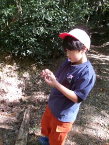 目的地到着までに、早速、木の実、葉、虫等、遊ぶことがたくさんあります。