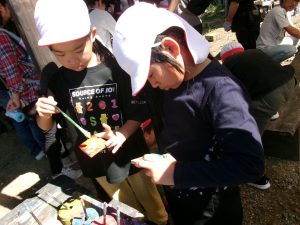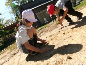 泥だらけになったり、水にぬれたりと、午前中ではできなかった活動ばかり、夢中で取り組みます。