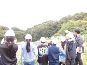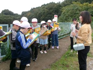 4年生は社会科で「郷土の文化・伝統と先人たち」の学習をします。福田太郎八さんの功績について学習をする中で、みのかも文化の森で学習を深めます。学習をより深めやすくするため、学習の前に実際に太郎洞池を目にしておいて、その後の文化の森での学習で、太郎八さんの行ったことについて実感を伴いやすくするために寄り道をしています。