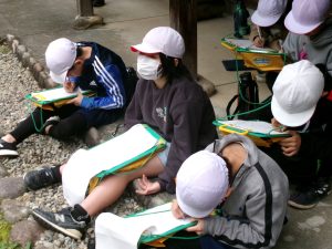 文化の森での学習後も、郷土の先人に関わる学習は続きます。