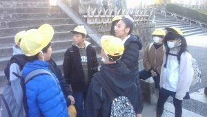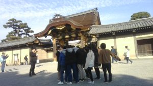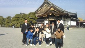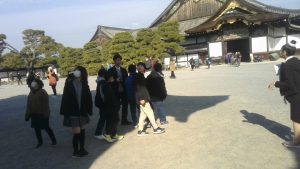 二の丸御殿をバックに記念写真  鴬張りの仕組み、わかったような⁉