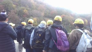 向こうの山の紅葉を見ているわけではありません。下を見ています。