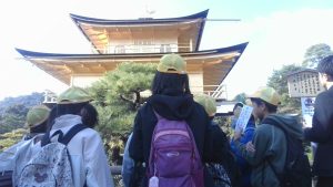 記念写真を撮るも、残念ながら金閣寺の上半分が切れている・・・。でも、これが精いっぱい