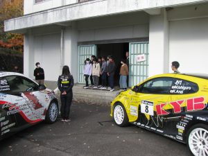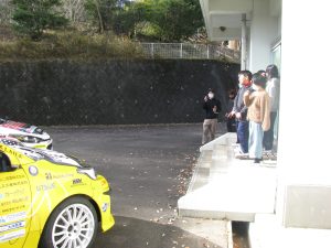 講師は、町内にお住いの女性ラリードライバーである兼松由奈さんとカヤバ(株)の社員でラリードライバーの石黒一暢さん。カヤバモータースポーツ部とTEAM KANEMATSUのご協力によるもので、「夢教室」と題して行われます。