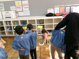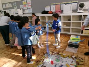 1年生のほうが、園児より少ない人数ですが、しっかりと対応して、園児たちが夢中になって活動します。