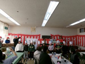 見事に完売後、恒例の校歌をハーモニカに合わせて歌います。