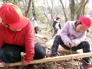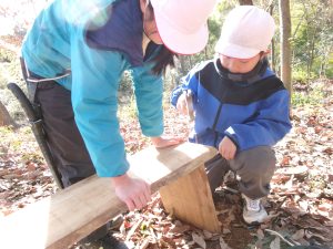 今回は希望が増えました。前回のチャレンジをもとに、引き続き希望したり、今回初めてチャレンジしたり。その中には、モノを作ることはせず、森でできる集団活動をする学級や図工の学習で身につけた道具の技能を発揮する学級などがあり、すごく自分たちで考えて臨んでいることがよく伝わってきます。そんな子供たちの姿がとてもうれしいです。