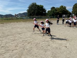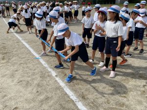 「チャレンジ!ハリケーン」では、各クラスで工夫して3人組をつくり、どうしたら早く回ってこれるか、どうしたら引っかからずにジャンプできるかを考えながら、作戦をつくりました。本番では、みんなで息を合わせ、元気いっぱいで競技に取り組む姿を見せてくれることを楽しみにしています。